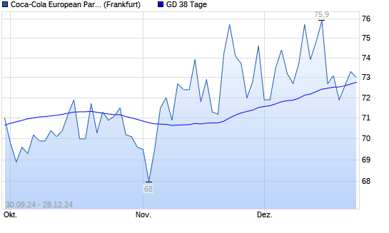 Mit dem Rücksetzer auf 73,00 EUR hat die Coca-Cola Europacific Partners-Aktie am 27.12.2024 die 38-Tage-Linie nach unten gekreuzt.