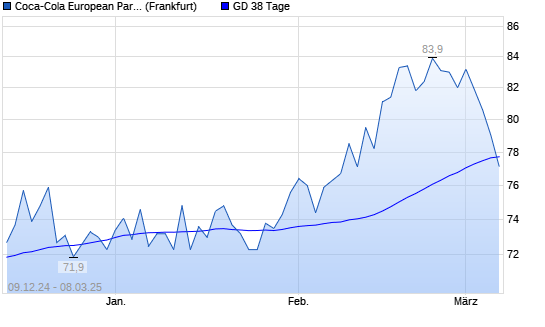 Mit dem Rücksetzer auf 77,10 EUR hat die Coca-Cola Europacific Partners-Aktie am 07.03.2025 die 38-Tage-Linie nach unten gekreuzt.