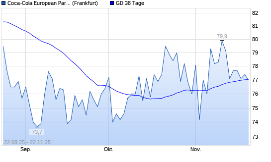 Mit dem Rücksetzer auf 77,00 EUR hat die Coca-Cola Europacific Partners-Aktie am 21.11.2025 die 38-Tage-Linie nach unten gekreuzt.