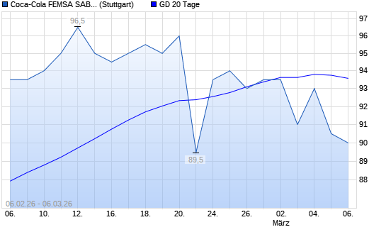 Mit dem Anstieg auf 94,00 EUR hat die Coca-Cola Femsa ADR-Aktie am 05.03.2026 die 20-Tage-Linie nach oben gekreuzt.