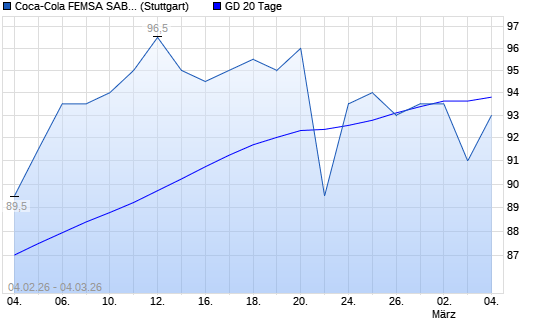 Mit dem Rücksetzer auf 93,00 EUR hat die Coca-Cola Femsa ADR-Aktie am 03.03.2026 die 20-Tage-Linie nach unten gekreuzt.