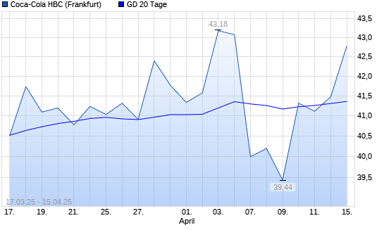 Mit dem Anstieg auf 41,48 EUR hat die Coca-Cola HBC-Aktie am 14.04.2025 die 20-Tage-Linie nach oben gekreuzt.