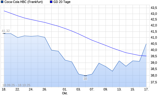 Mit dem Anstieg auf 40,50 EUR hat die Coca-Cola HBC-Aktie am 17.10.2025 die 20-Tage-Linie nach oben gekreuzt.