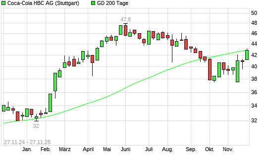 Mit dem Anstieg auf 43,52 EUR hat die Coca-Cola HBC-Aktie am 26.11.2025 die 200-Tage-Linie nach oben gekreuzt.