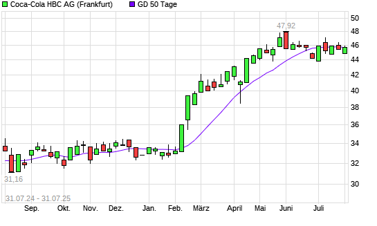 Mit dem Anstieg auf 45,86 EUR hat die Coca-Cola HBC-Aktie am 30.07.2025 die 50-Tage-Linie nach oben gekreuzt.