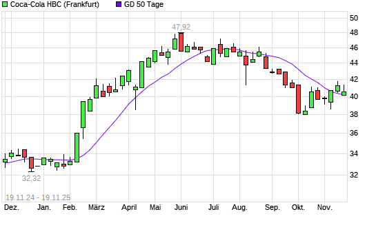 Mit dem Anstieg auf 41,06 EUR hat die Coca-Cola HBC-Aktie am 18.11.2025 die 50-Tage-Linie nach oben gekreuzt.