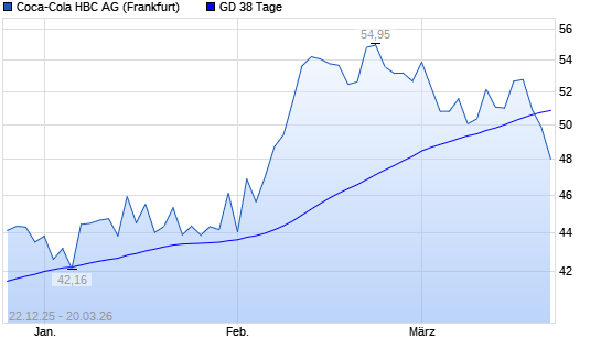 Mit dem Rücksetzer auf 49,84 EUR hat die Coca-Cola HBC-Aktie am 19.03.2026 die 38-Tage-Linie nach unten gekreuzt.