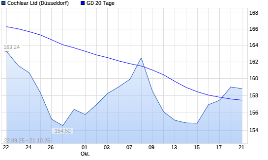 Mit dem Anstieg auf 159,88 EUR hat die Cochlear-Aktie am 20.10.2025 die 20-Tage-Linie nach oben gekreuzt.