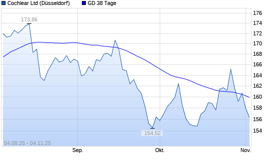Mit dem Rücksetzer auf 161,18 EUR hat die Cochlear-Aktie am 03.11.2025 die 38-Tage-Linie nach unten gekreuzt.