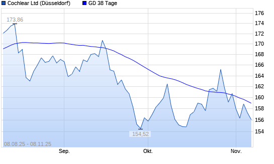 Mit dem Rücksetzer auf 158,28 EUR hat die Cochlear-Aktie am 07.11.2025 die 38-Tage-Linie nach unten gekreuzt.