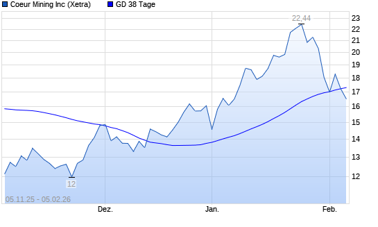 Mit dem Rücksetzer auf 17,10 EUR hat die Coeur Mining-Aktie am 04.02.2026 die 38-Tage-Linie nach unten gekreuzt.