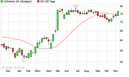 Mit dem Anstieg auf 75,00 EUR hat die Cofinimmo-Aktie am 06.11.2025 die 100-Tage-Linie nach oben gekreuzt.