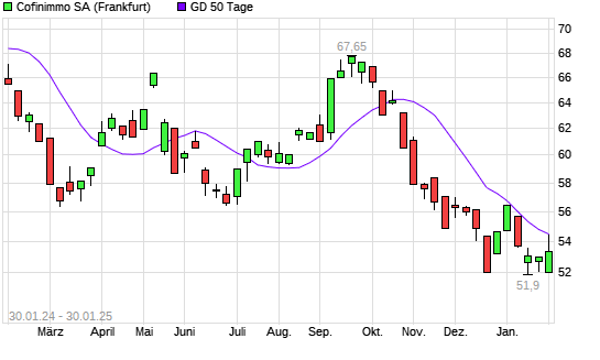 Mit dem Anstieg auf 54,40 EUR hat die Cofinimmo-Aktie am 29.01.2025 die 50-Tage-Linie nach oben gekreuzt.