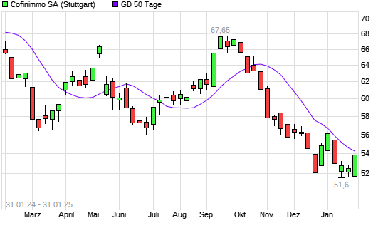 Mit dem Rücksetzer auf 53,30 EUR hat die Cofinimmo-Aktie am 30.01.2025 die 50-Tage-Linie nach unten gekreuzt.