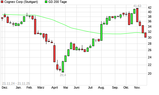 Mit dem Anstieg auf 31,48 EUR hat die Cognex-Aktie am 20.11.2025 die 200-Tage-Linie nach oben gekreuzt.