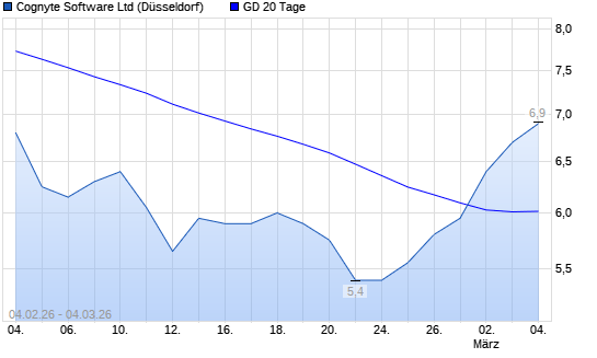 Mit dem Anstieg auf 6,50 EUR hat die Cognyte Software-Aktie am 03.03.2026 die 20-Tage-Linie nach oben gekreuzt.