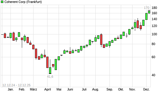 Mit dem Anstieg auf 170,00 EUR hat die Coherent-Aktie (ISIN US19247G1076) am 11.12.2025 ein neues All-Time-High erreicht und damit den Kurs vom 10.12.2025 eingestellt.