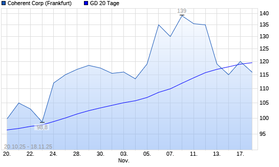 Mit dem Anstieg auf 120,00 EUR hat die Coherent-Aktie am 17.11.2025 die 20-Tage-Linie nach oben gekreuzt.