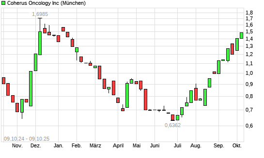 Mit dem Anstieg auf 1,51 EUR hat die Coherus Biosciences-Aktie (ISIN US19249H1032) am 08.10.2025 ein neues 6-Monats-Hoch erreicht und damit den Kurs vom 06.10.2025 eingestellt.