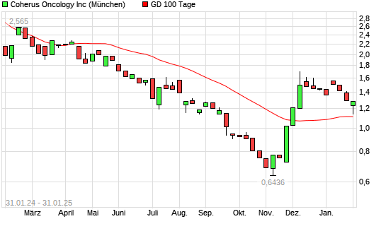 Mit dem Anstieg auf 1,16 EUR hat die Coherus Biosciences-Aktie am 30.01.2025 die 100-Tage-Linie nach oben gekreuzt.