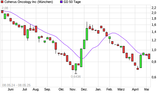 Mit dem Rücksetzer auf 0,82 EUR hat die Coherus Biosciences-Aktie am 07.05.2025 die 50-Tage-Linie nach unten gekreuzt.