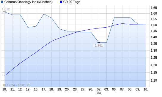 Mit dem Rücksetzer auf 1,44 EUR hat die Coherus Biosciences-Aktie am 09.01.2025 die 20-Tage-Linie nach unten gekreuzt.Die Coherus Biosciences-Aktie befindet sich seit dem 06.01.2025 im ...weiterlesen