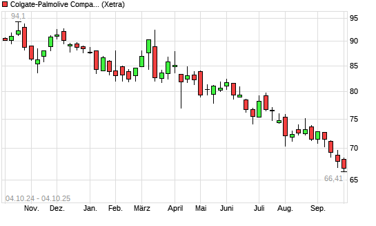 Mit dem Rücksetzer auf 66,66 EUR hat die Colgate-Palmolive-Aktie (ISIN US1941621039) am 03.10.2025 ein neues 12-Monats-Tief erreicht und damit den Kurs vom 02.10.2025 eingestellt.