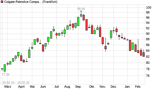 Mit dem Rücksetzer auf 82,08 EUR hat die Colgate-Palmolive-Aktie (ISIN US1941621039) am 14.02.2025 ein neues 6-Monats-Tief erreicht und damit den Kurs vom 07.02.2025 eingestellt.
