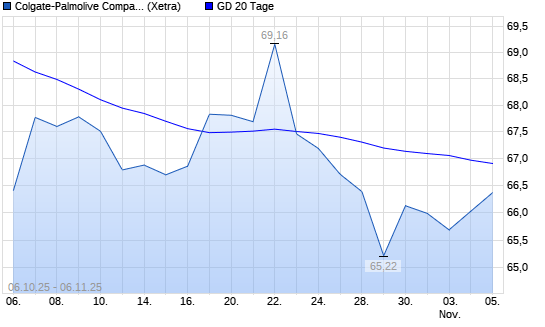 Mit dem Anstieg auf 67,00 EUR hat die Colgate-Palmolive-Aktie am 05.11.2025 die 20-Tage-Linie nach oben gekreuzt.