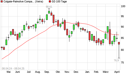 Mit dem Rücksetzer auf 81,99 EUR hat die Colgate-Palmolive-Aktie am 07.04.2025 die 100-Tage-Linie nach unten gekreuzt.