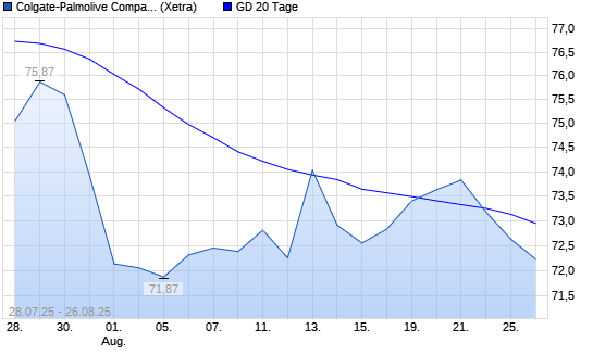 Mit dem Rücksetzer auf 72,52 EUR hat die Colgate-Palmolive-Aktie am 25.08.2025 die 20-Tage-Linie nach unten gekreuzt.