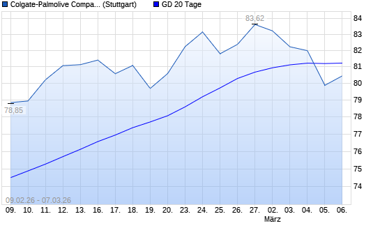 Mit dem Rücksetzer auf 79,49 EUR hat die Colgate-Palmolive-Aktie am 06.03.2026 die 20-Tage-Linie nach unten gekreuzt.