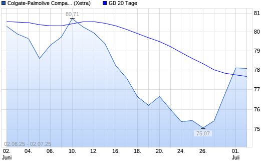 Mit dem Anstieg auf 78,00 EUR hat die Colgate-Palmolive-Aktie am 01.07.2025 die 20-Tage-Linie nach oben gekreuzt.Die Colgate-Palmolive-Aktie befindet sich seit dem 11.03.2025 im langfristigen ...weiterlesen