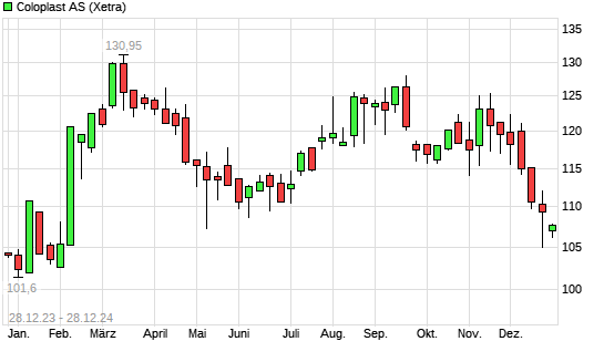 Mit dem Rücksetzer auf 104,95 EUR hat die Coloplast-Aktie (ISIN DK0060448595) am 27.12.2024 ein neues 6-Monats-Tief erreicht und damit den Kurs vom 20.12.2024 eingestellt.