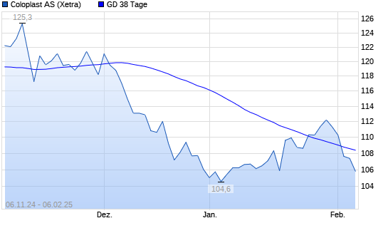 Mit dem Rücksetzer auf 107,25 EUR hat die Coloplast-Aktie am 05.02.2025 die 38-Tage-Linie nach unten gekreuzt.