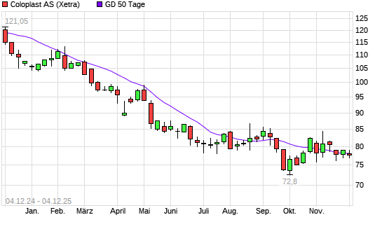 Mit dem Rücksetzer auf 77,72 EUR hat die Coloplast-Aktie am 03.12.2025 die 50-Tage-Linie nach unten gekreuzt.