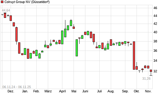 Mit dem Rücksetzer auf 31,56 EUR hat die Colruyt-Aktie (ISIN BE0974256852) am 05.11.2025 ein neues 12-Monats-Tief erreicht und damit den Kurs vom 04.11.2025 eingestellt.