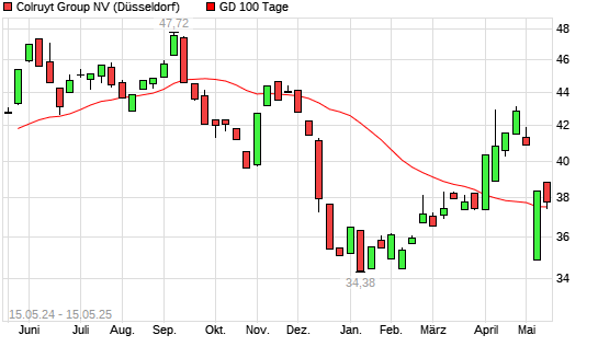 Mit dem Anstieg auf 37,84 EUR hat die Colruyt-Aktie am 14.05.2025 die 100-Tage-Linie nach oben gekreuzt.