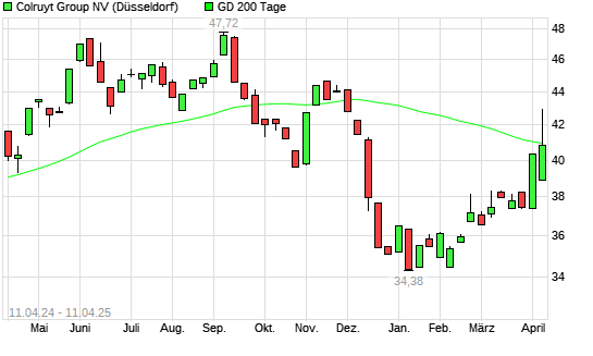 Mit dem Anstieg auf 42,82 EUR hat die Colruyt-Aktie am 10.04.2025 die 200-Tage-Linie nach oben gekreuzt.