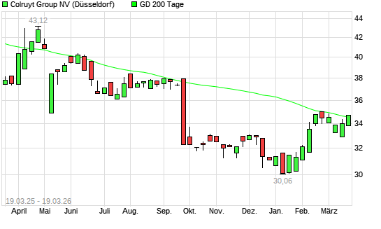 Mit dem Anstieg auf 34,58 EUR hat die Colruyt-Aktie am 18.03.2026 die 200-Tage-Linie nach oben gekreuzt.