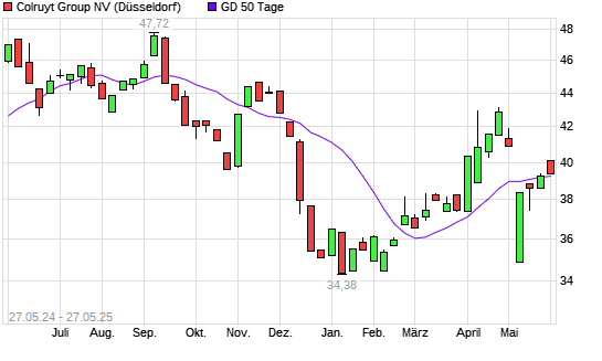 Mit dem Anstieg auf 39,98 EUR hat die Colruyt-Aktie am 26.05.2025 die 50-Tage-Linie nach oben gekreuzt.