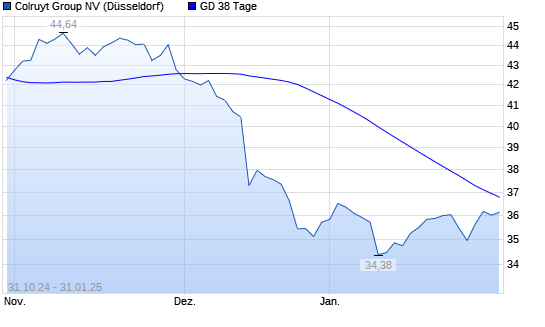 Mit dem Rücksetzer auf 36,12 EUR hat die Colruyt-Aktie am 30.01.2025 die 38-Tage-Linie nach unten gekreuzt.Die Colruyt-Aktie befindet sich seit dem 29.11.2024 im langfristigen Abwärtstrend ...weiterlesen