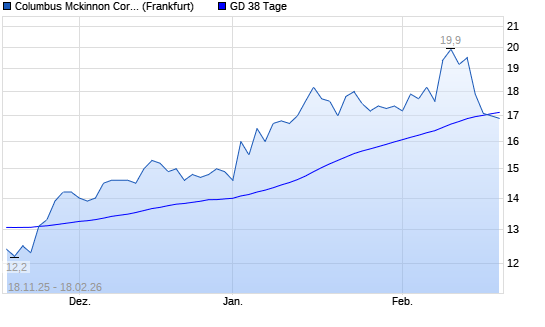 Mit dem Rücksetzer auf 17,00 EUR hat die Columbus McKinnon-Aktie am 17.02.2026 die 38-Tage-Linie nach unten gekreuzt.