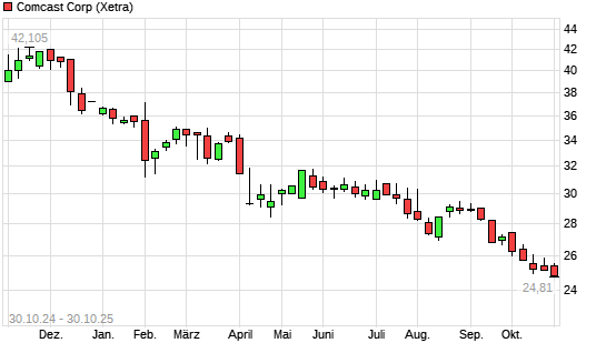 Mit dem Rücksetzer auf 24,49 EUR hat die Comcast-Aktie (ISIN US20030N1019) am 29.10.2025 ein neues 5-Jahres-Tief erreicht und damit den Kurs vom 16.10.2025 eingestellt.