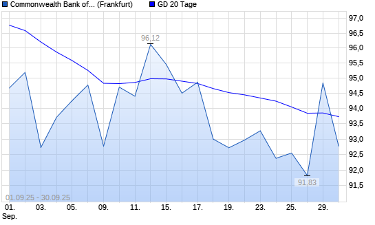 Mit dem Anstieg auf 94,84 EUR hat die Commonwealth Bank-Aktie am 29.09.2025 die 20-Tage-Linie nach oben gekreuzt.