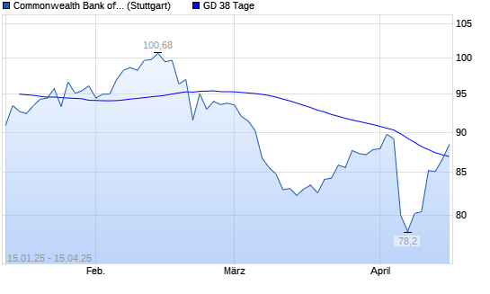 Mit dem Anstieg auf 87,70 EUR hat die Commonwealth Bank-Aktie am 14.04.2025 die 38-Tage-Linie nach oben gekreuzt.