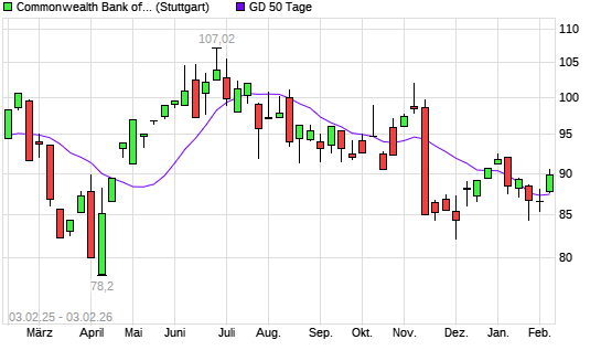 Mit dem Anstieg auf 88,80 EUR hat die Commonwealth Bank-Aktie am 02.02.2026 die 50-Tage-Linie nach oben gekreuzt.