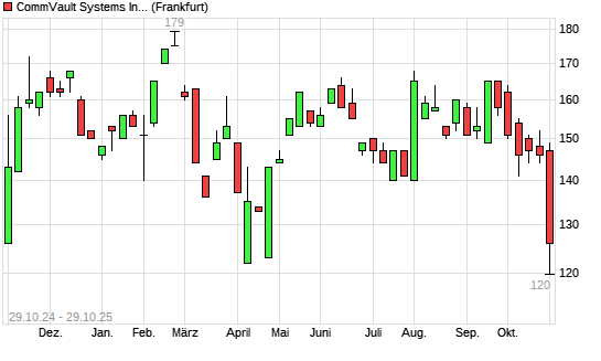Mit dem Rücksetzer auf 126,00 EUR hat die Commvault Systems-Aktie (ISIN US2041661024) am 28.10.2025 ein neues 6-Monats-Tief erreicht und damit den Kurs vom 14.07.2025 eingestellt.