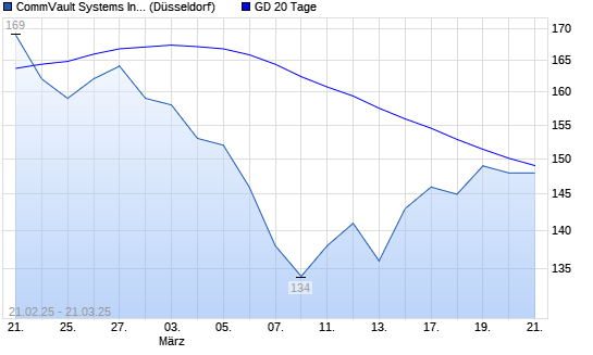 Mit dem Anstieg auf 152,00 EUR hat die Commvault Systems-Aktie am 20.03.2025 die 20-Tage-Linie nach oben gekreuzt.