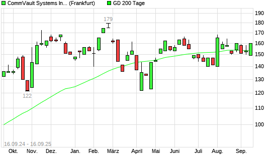 Mit dem Rücksetzer auf 149,00 EUR hat die Commvault Systems-Aktie am 15.09.2025 die 200-Tage-Linie nach unten gekreuzt.